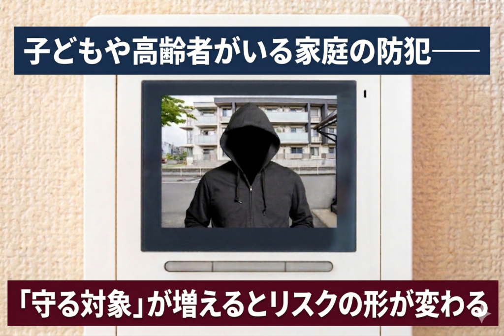 防犯対策は、家族構成によって変わります。単身者と、子どもや高齢者がいる家庭では、リスクの種類も、守るべき対象も異なります。特に子どもや高齢者は、侵入者に対して物理的・心理的に抵抗が難しい場合があり、通常の空き巣対策に加えて別の視点が必要です。今回は、家族構成を意識した防犯の考え方を整理します。