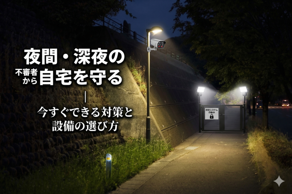 夜間・深夜は視界が悪く周囲の目が少ないため、不審者にとって行動しやすい時間帯です。しかし、センサーライト・防犯カメラ・補助錠・防犯フィルムといった対策を組み合わせることで、夜間のリスクを大幅に下げることができます。就寝前の施錠確認を習慣にするとともに、設備面での備えも整えておくことが、安心して眠れる住環境づくりにつながります。